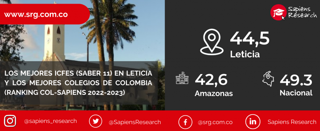 Los mejores ICFES (saber 11) en Leticia y los mejores colegios de Colombia (Ranking Col-Sapiens 2022-2023)