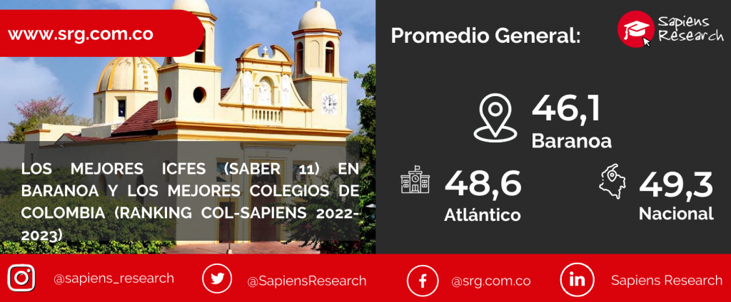 Los mejores ICFES (saber 11) en Baranoa y los mejores colegios de Colombia (Ranking Col-Sapiens 2022-2023)