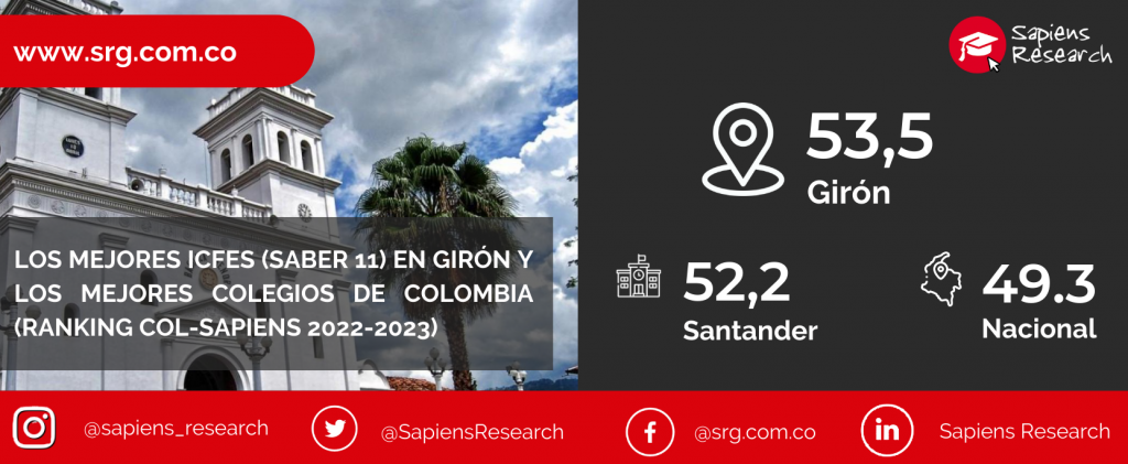 Los mejores ICFES (saber 11) en Girón y los mejores colegios de Colombia (Ranking Col-Sapiens 2022-2023)