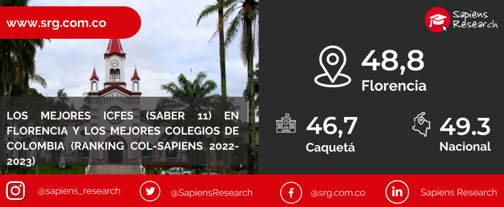 Los colegios que ocuparon la más alta categoría de desempeño académico en Florencia fueron: C.E. Amigos Instituto Jean Piaget (D6), y el Colegio Domingo Savio (D8 A).